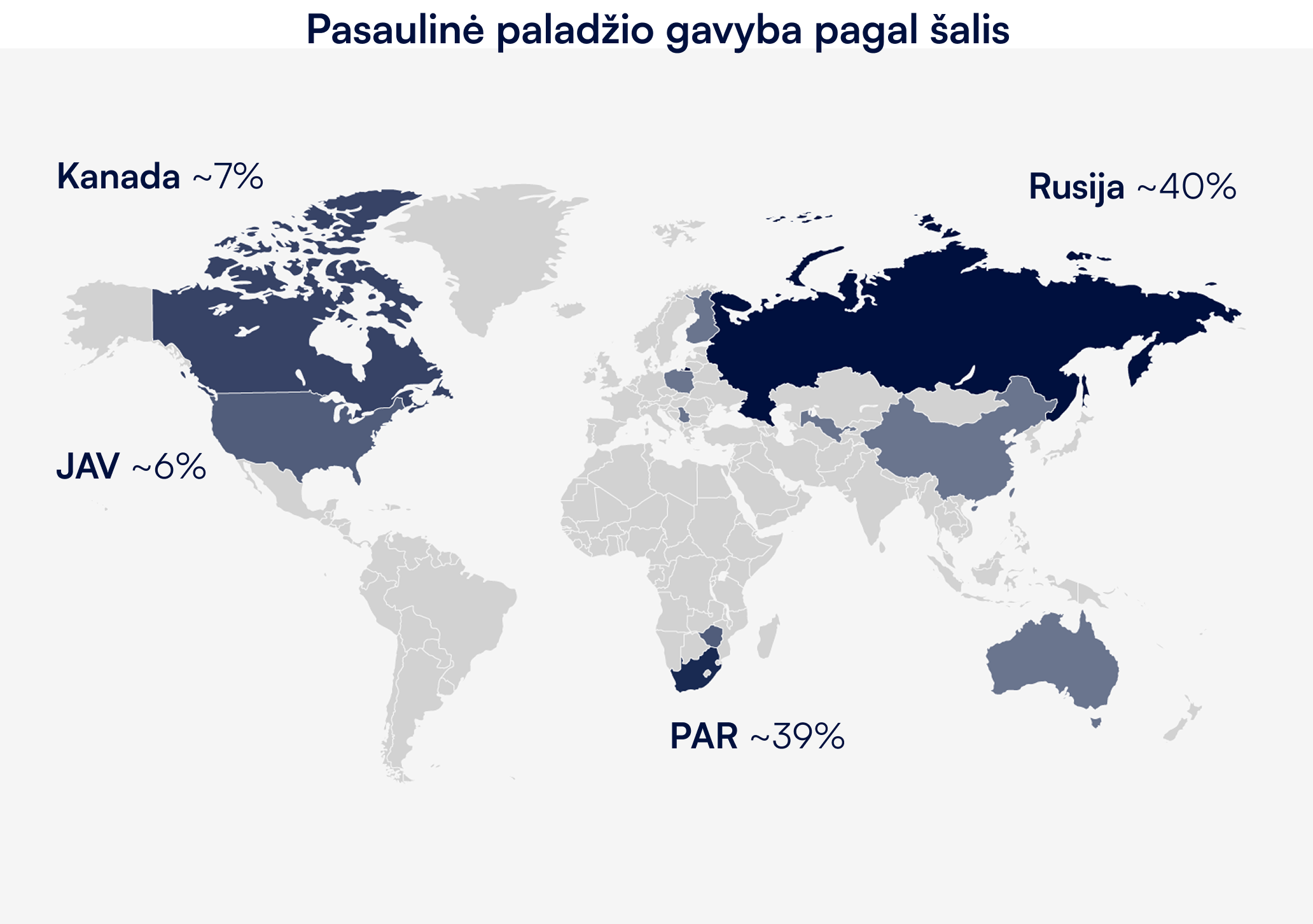 Didelė priklausomybė nuo Rusijos ir PAR reiškia, kad investuotojas į paladį iš dalies lošia ir geopolitinę kortą. Sankcijos, politinis nestabilumas, darbo konfliktai kasyklose – visa tai gali arba sukelti staigų kainos šuolį (jei tiekimas nutrūks), arba sumažinti pasitikėjimą rinkoje. Pavyzdžiui, bet kokia žinia apie Rusijos paladžio eksporto apribojimus nedelsiant pakeltų kainas; tuo tarpu staigus Rusijos pasiūlos padidėjimas (pvz., parduodant strategines atsargas) galėtų nulemti kritimą. Ši rizika dvipusė, sunkiai prognozuojama, bet investuotojui būtina suprasti, kad paladžio rinka labai koncentruota, todėl ne tokia stabili kaip globaliai išgaunamo aukso rinka.